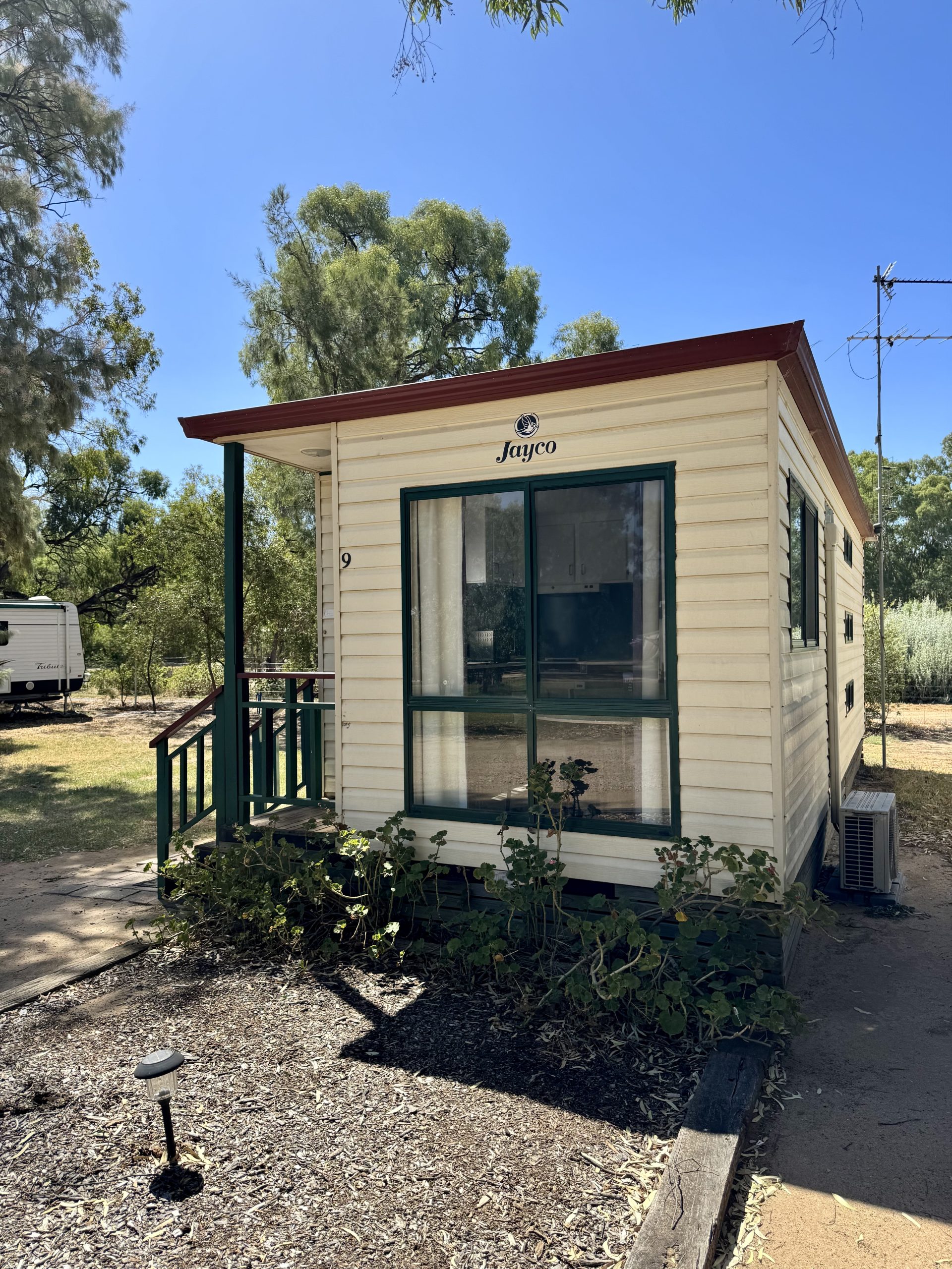 Featuring a fully equipped kitchen with cook top/grill, microwave oven, cooking utensils, all cutlery and dinner set and a bar fridge. Toilet/shower. Complete with digital TV and reverse cycle air conditioning, this cabin makes for comfortable family living at an affordable price.